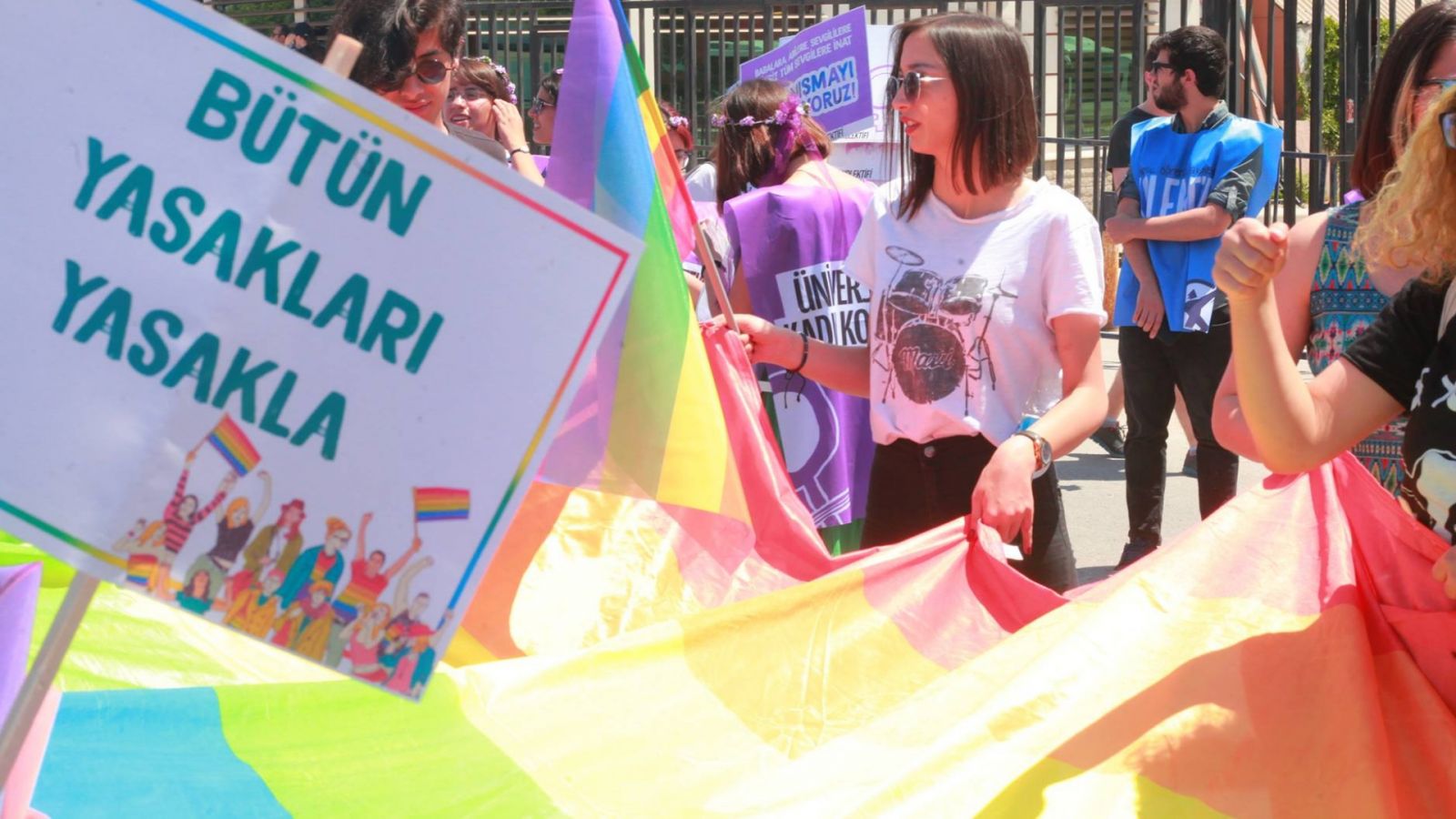 “Hep birlikte haklarımıza sahip çıkmaya, kalkan yasağı kutlamaya; İŞ, AŞK, BARIŞ İÇİN, sokakları gökkuşağına boyamaya davet ediyoruz.”