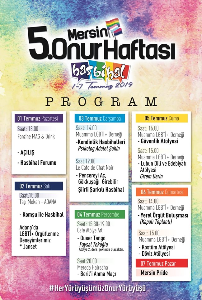 5. Mersin Onur Haftası Komitesi, 28 Haziran’da yayımladığı açıklama ile programını böyle duyurmuştu: