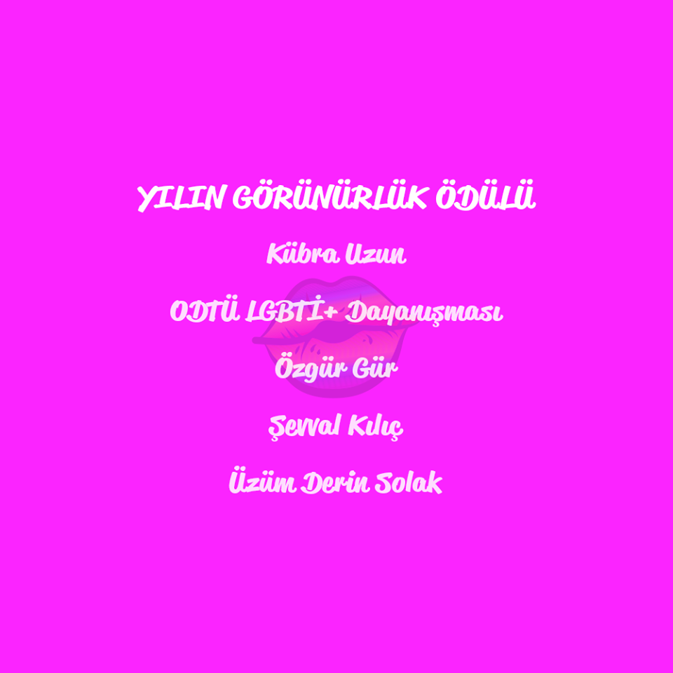 “Adayları siz belirlediniz ve kazananı yine siz seçeceksiniz” diyen SPoD LGBTİ+ 17 Eylül’e kadar kamuoyu oylaması başlatmıştı. Adaylıklar üzerinden yapılan oylamanın ardından kazananların açıklanacağı ödül töreni 21 Eylül akşamı Anahit Sahne’de düzenlenecek: