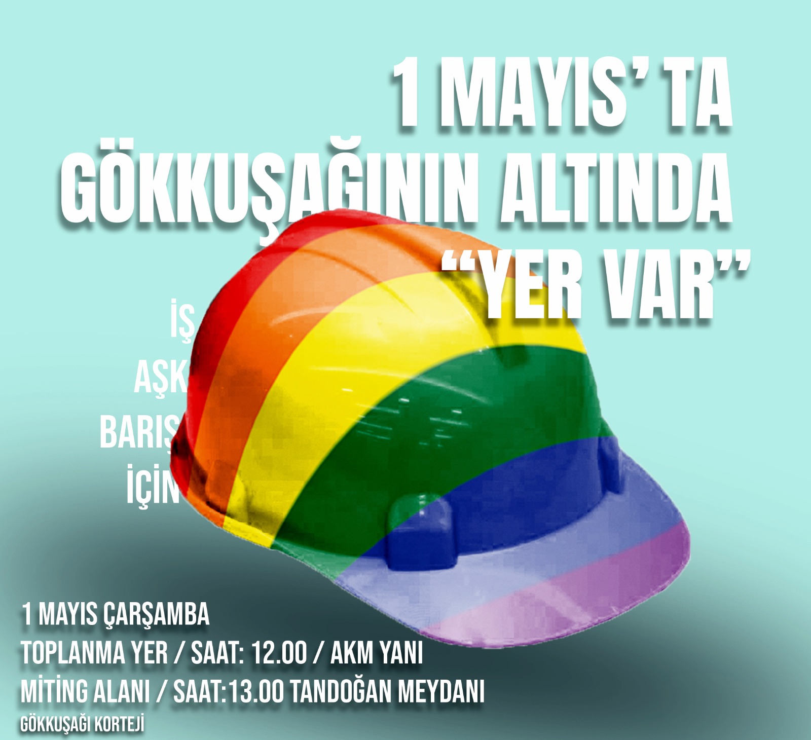 Geçen yıl bütün yasaklara rağmen sloganları ve bayrakları ile 1 Mayıs alanında olan Gökkuşağı Korteji, bu yıl yine yasaklara, ayrımcılığa, emek sömürüsüne, mobbinge, şiddete karşı; emek, özgürlük, barış, eşitlik, aşk için 1 Mayıs’ta sokaklarda!
