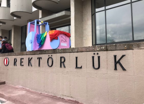 ODTÜ Öğrencilerinden Rektör Mustafa Verşan Kök’ün ayrımcı söylemlerine tepki yağdı ODTÜ Şenliklerinin ülke gündemine girmesiyle birlikte ayrımcı açıklamalarda bulunan Rektör Mustafa Verşan Kök’e; öğrenciler, trans renklerinden yapılmış gökkuşağı bayraklı traktörle karşılık verdi.