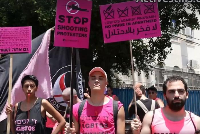 Tel Aviv Onur Yürüyüşü'ne İşgal Karşıtı Aktivistler Katılmayı Reddetti Tel Aviv Onur Yürüyüşü sırasında bir grup işgal karşıtı aktivist İsrail'in 'iki yüzlü politikası'gerekçesiyle protesto etmek için oradaydı.